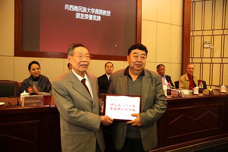 11月4日上午的开幕式由西南民族大学旅游与历史文化学院喇明清教授主持,西南民族大学丁克毅教授、土司专委会李世愉研究员、平武县人民政府晋超副县长、美国加州大学洛杉矶分校教授PatrickDowdey教授先后致辞,土司专委会主席团主席方铁代表专委会向为土司研究做出突出贡献的龚荫先生,授予了“研究土司六十年,辛勤耕耘作贡献”荣誉奖牌。