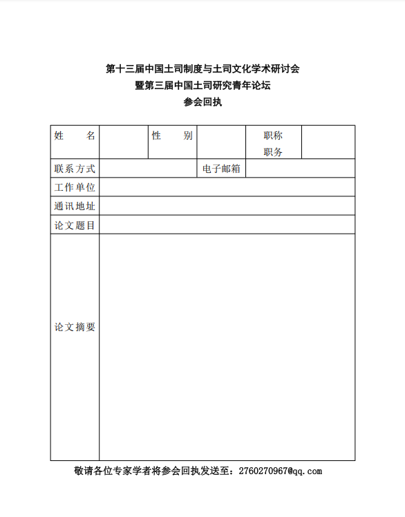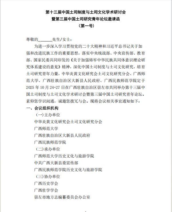 第十三届中国土司制度与土司文化学术研讨会暨第三届中国土司研究青年论坛邀请函(第一号)