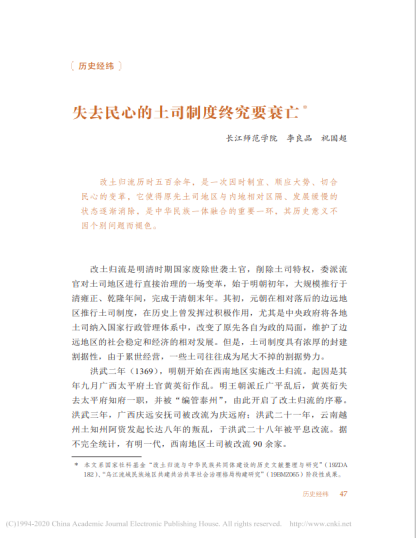 本网讯(土司专委会秘书处雍蕹)《历史评论》是由中国社会科学院主管、中国历史研究院主办、历史研究杂志社编辑出版的季刊,上面发表的文章在很大程度上代表了我国历史研究领域的政治意识形态。在2020年第2期,土司专委会轮值主席李良品等发表《失去民心的土司制度终究要衰亡》一文。