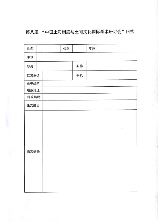 第八届中国土司制度与土司文化国际学术研讨会邀请函