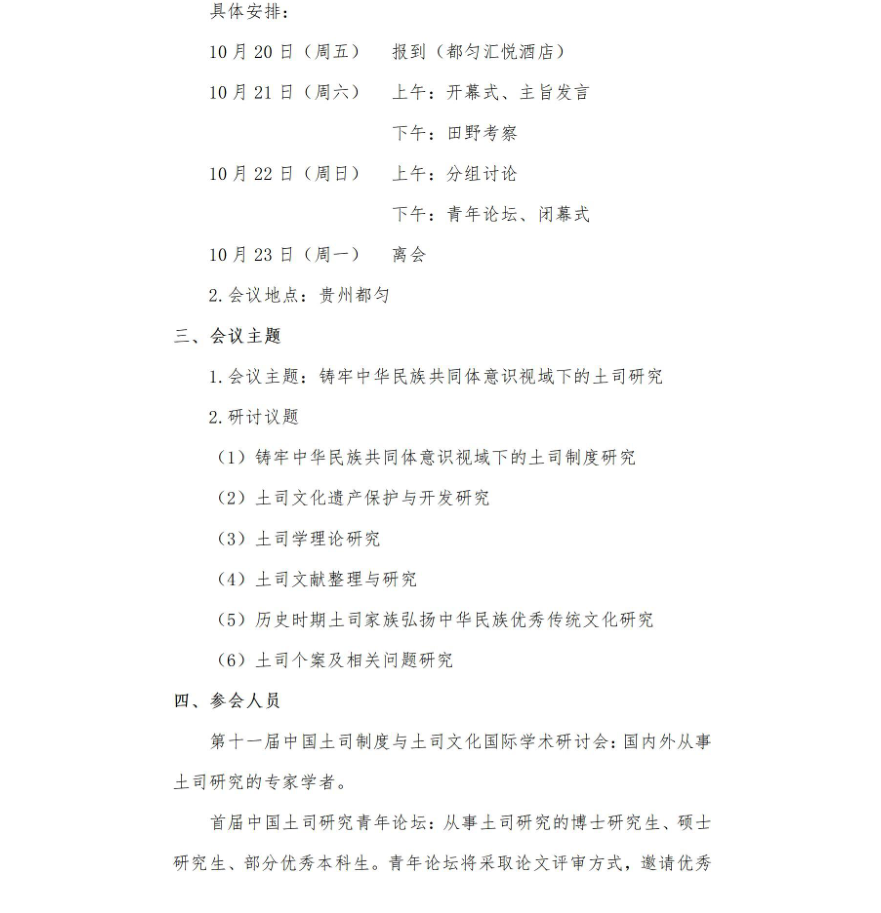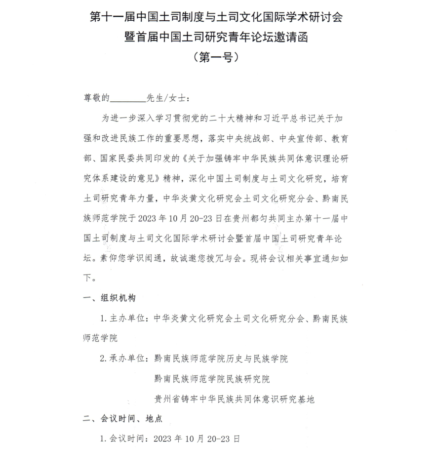 第十一届中国土司制度与土司文化国际学术研讨会暨首届中国土司研究青年论坛邀请函