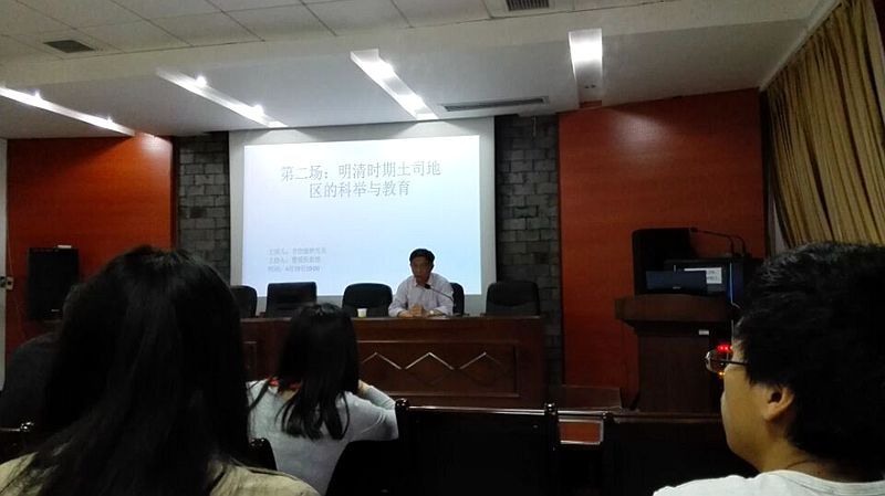 4月17日、19日、20日晚上,他以《改土归流与国家治理》、《明清时期土司地区的科举与教育》、《谈谈构建土司学的必然性与必要性》为题,先后做了三场学术报告。