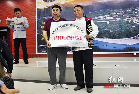 在开幕式上,土司专委会主席方铁代表专委会向湖南省永顺县授予了“中华炎黄文化研究会土司文化专业委员会土司制度与土司文化研究中心/基地”牌匾。授牌表明,湖南省永顺县正式成为土司专委会的研究基地。这是继广西忻城县之后,新设的第二个的土司文化研究基地。它的设立,为海内外人士进一步认知中国土司制度与土司文化、从事土司研究带来了更多的便利。(章贇供稿)